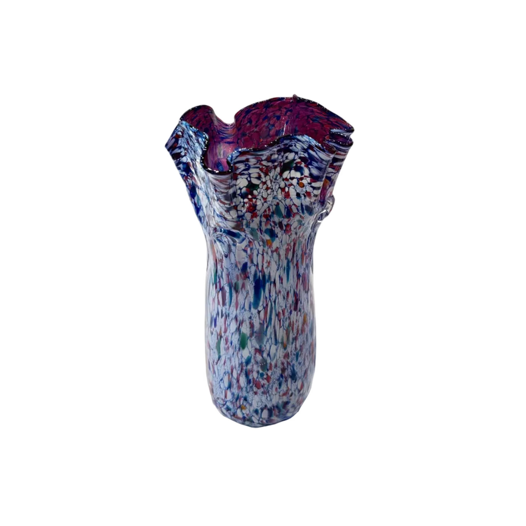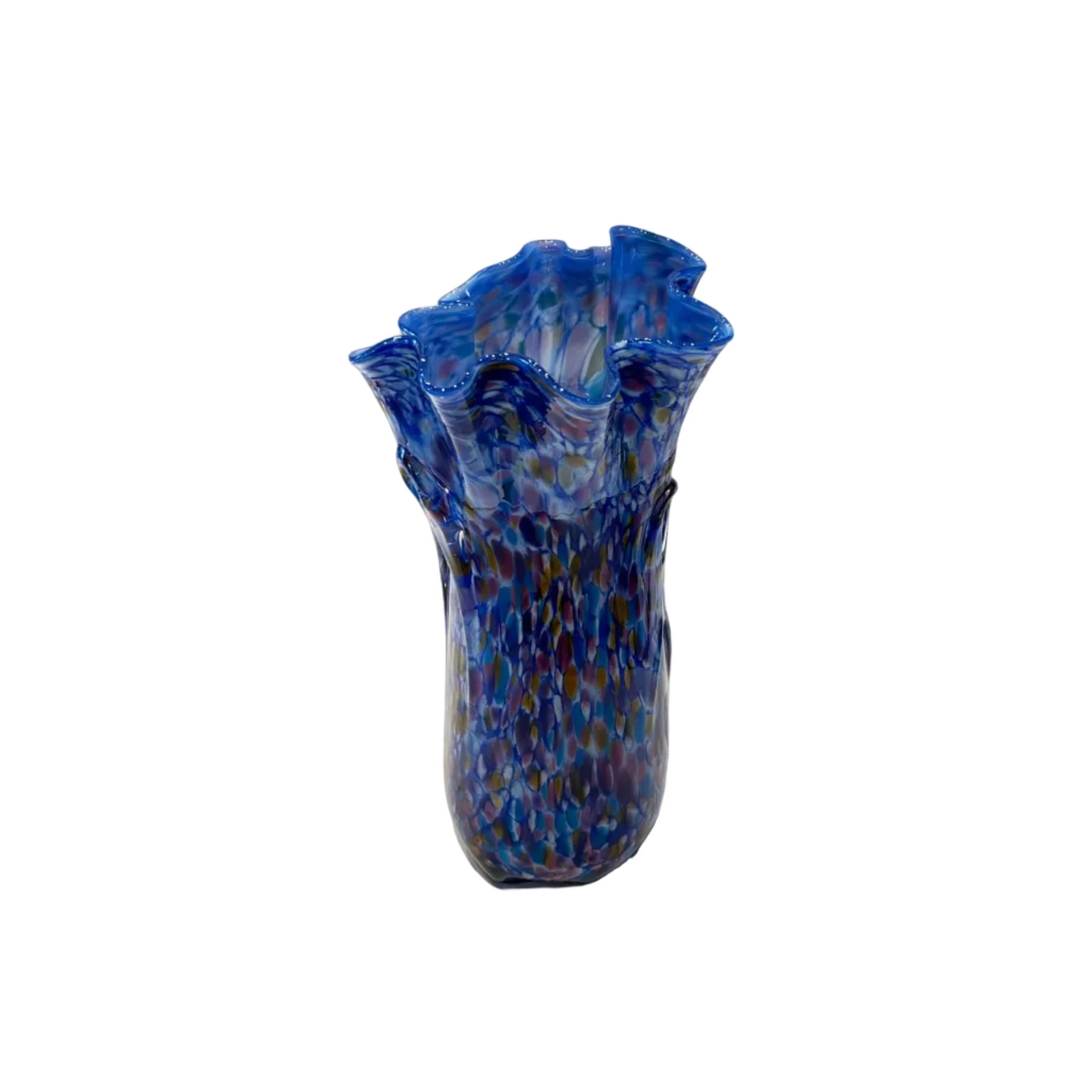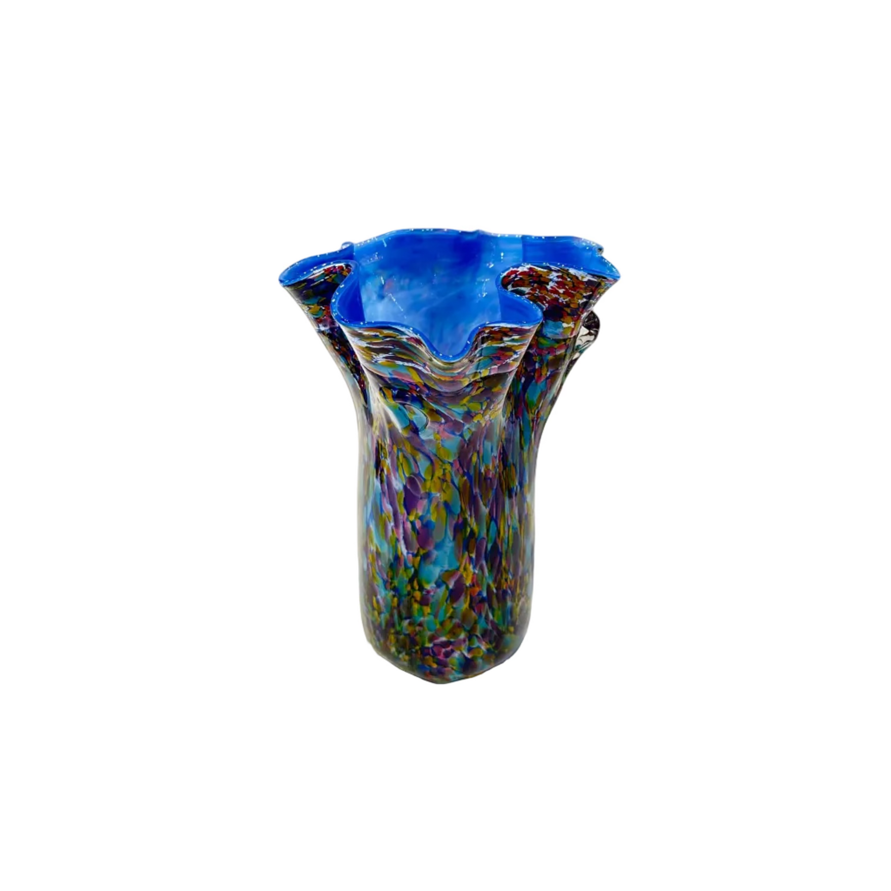 Hand blown Wildflower Swing Vase by Wimberley Glassworks multi with silver blue