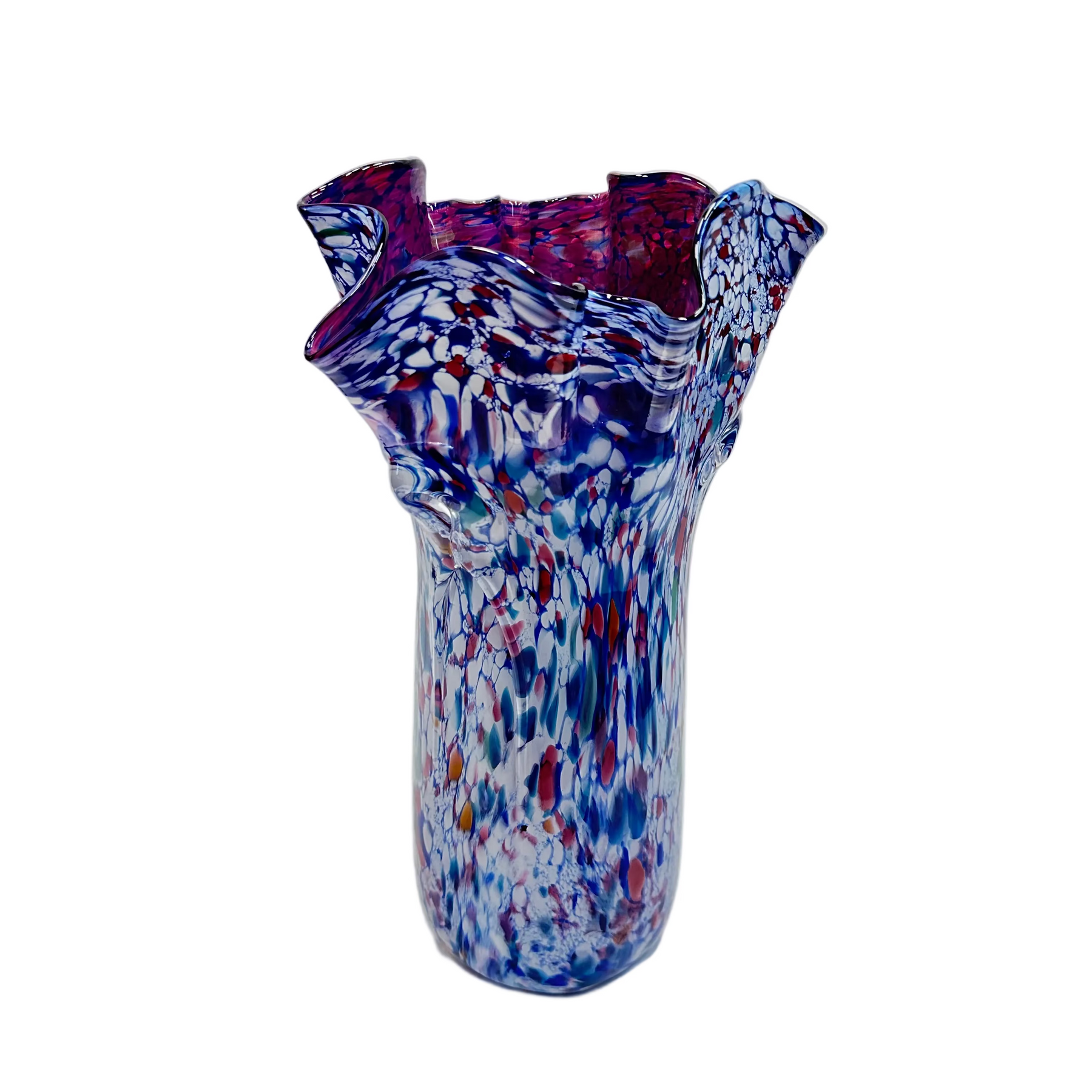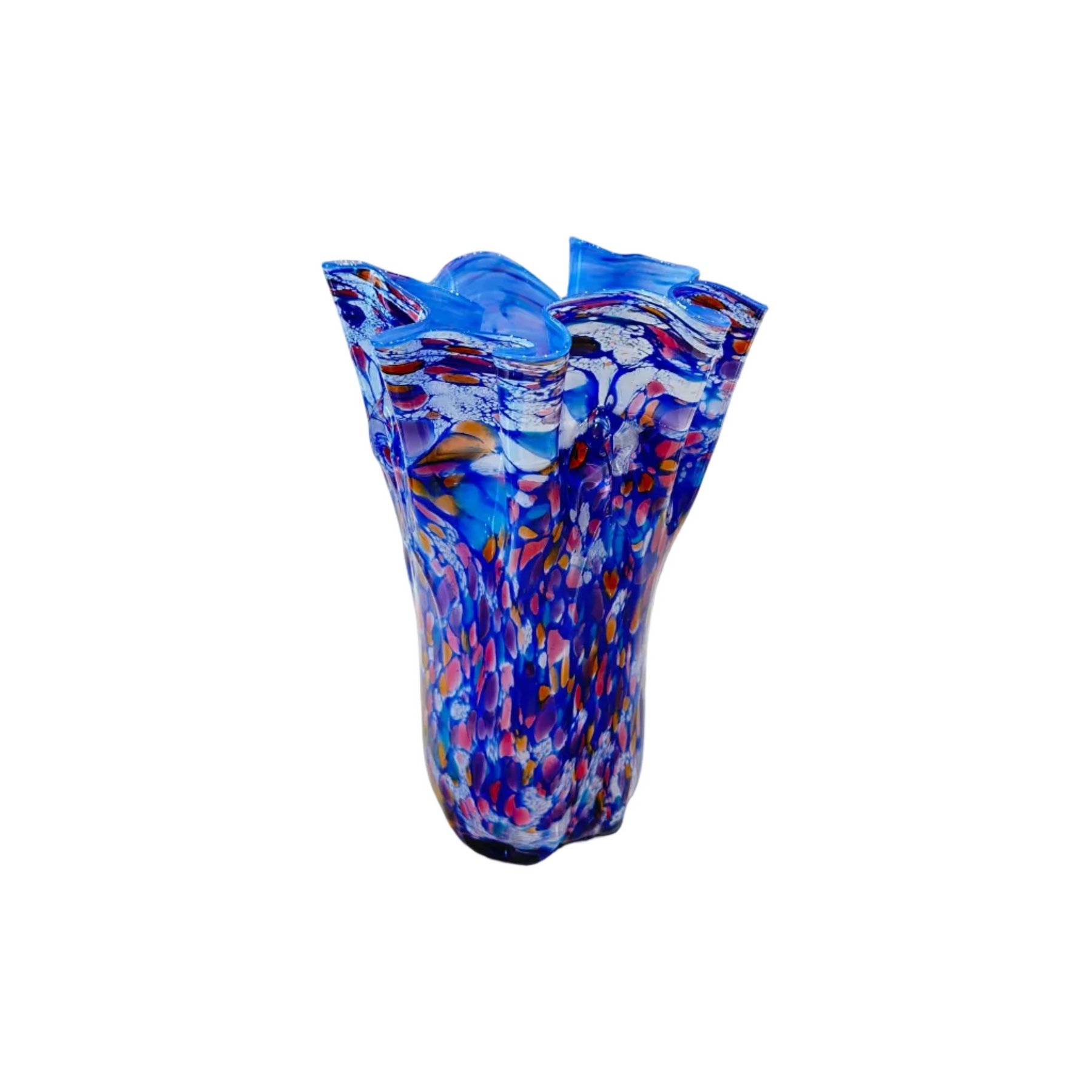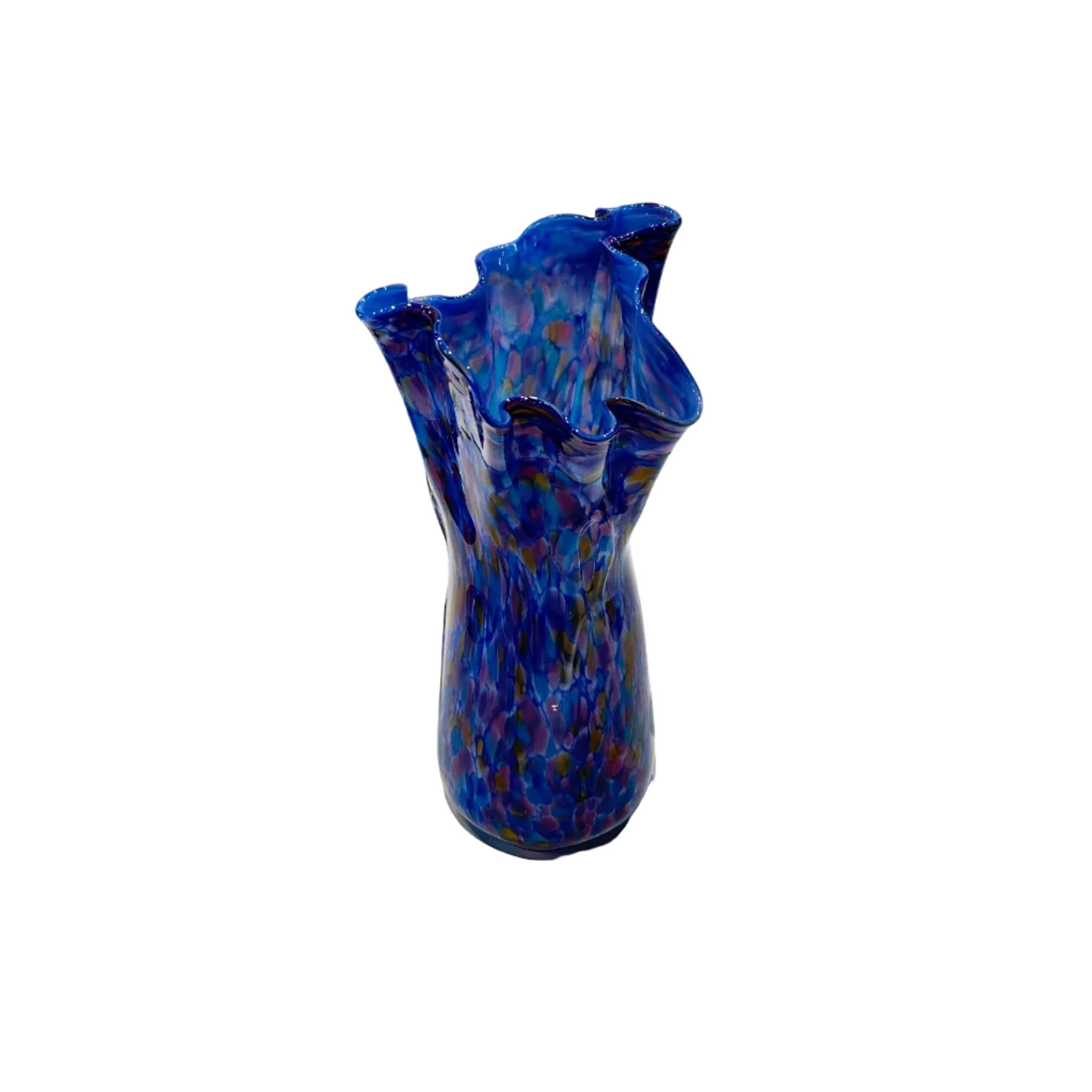 Hand blown Wildflower Swing Vase by Wimberley Glassworks multi with silver blue