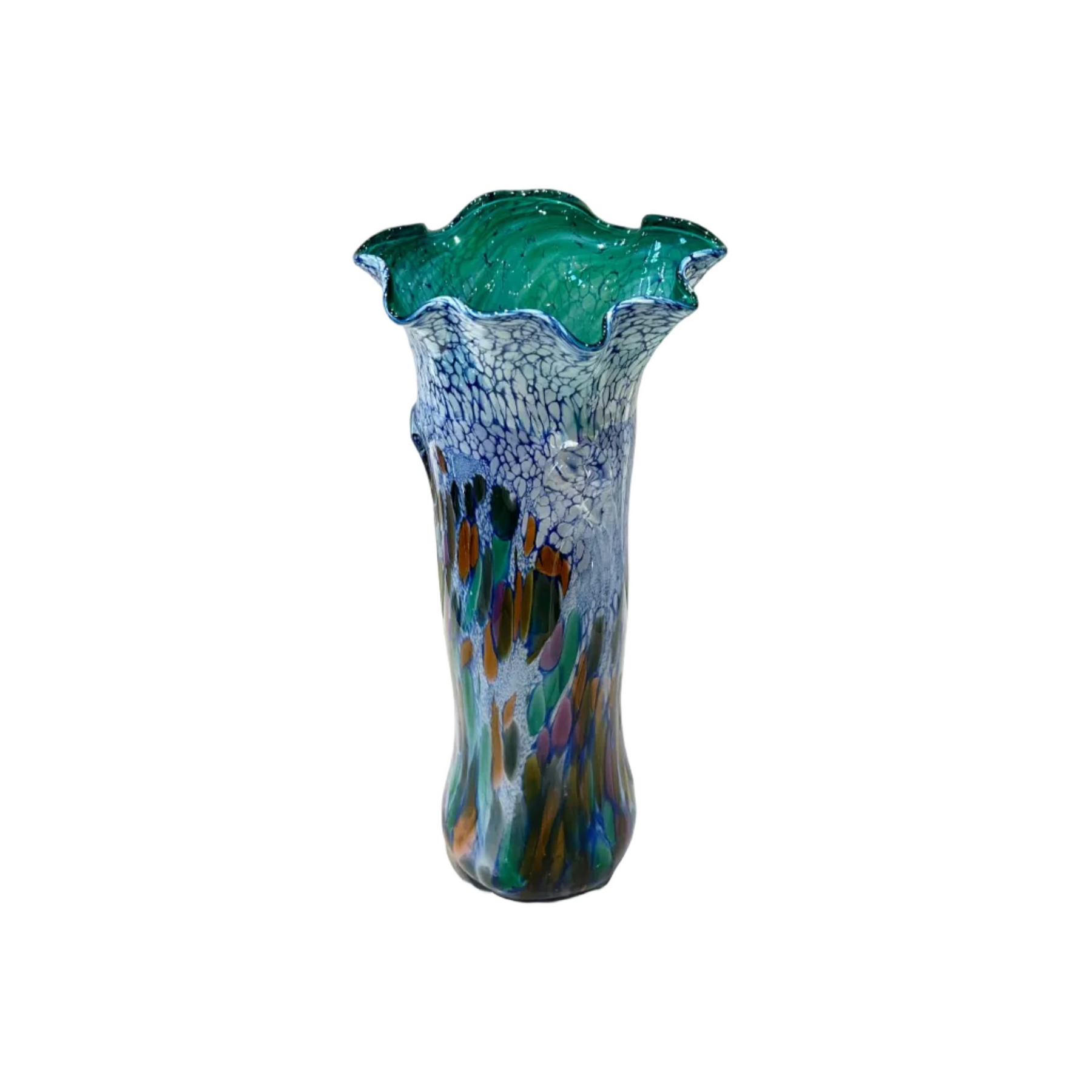 Hand blown Wildflower Swing Vase by Wimberley Glassworks multi and aqua