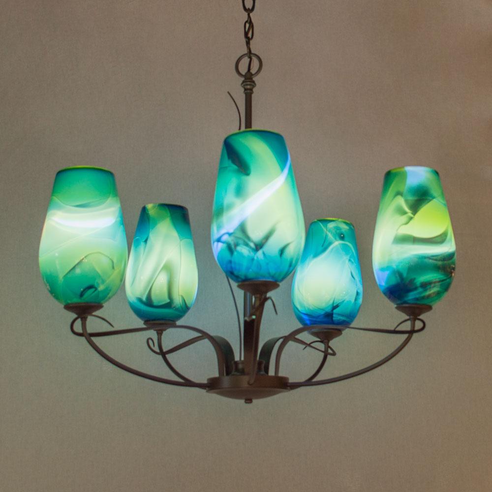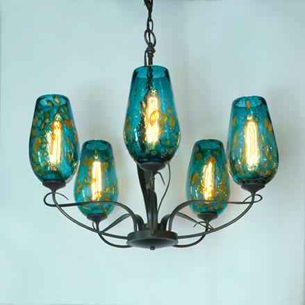 FLORA Chandelier 5 Arm Uplight with Blown Glass