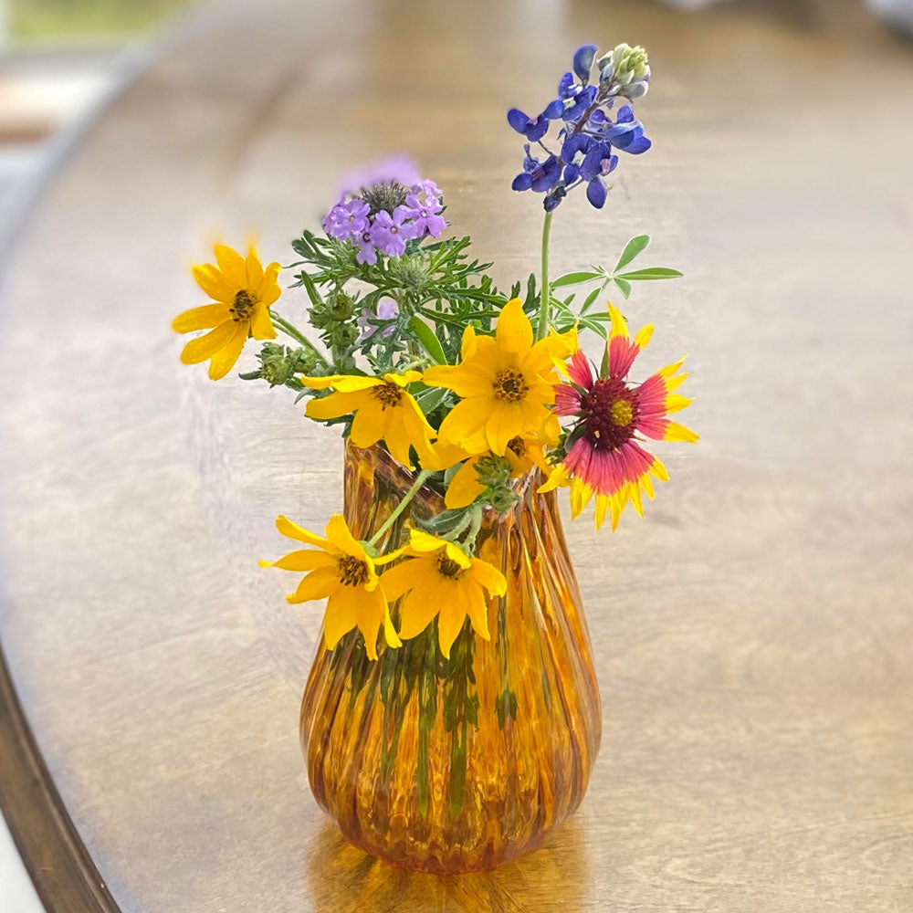 Each of these delightful bud vases are handcrafted individually with a WGW stamp on the bottom. Short bud vases are about 4.5" high and tall bud vases are about 9" high. These display wild flowers beautifully and add charm to any space.