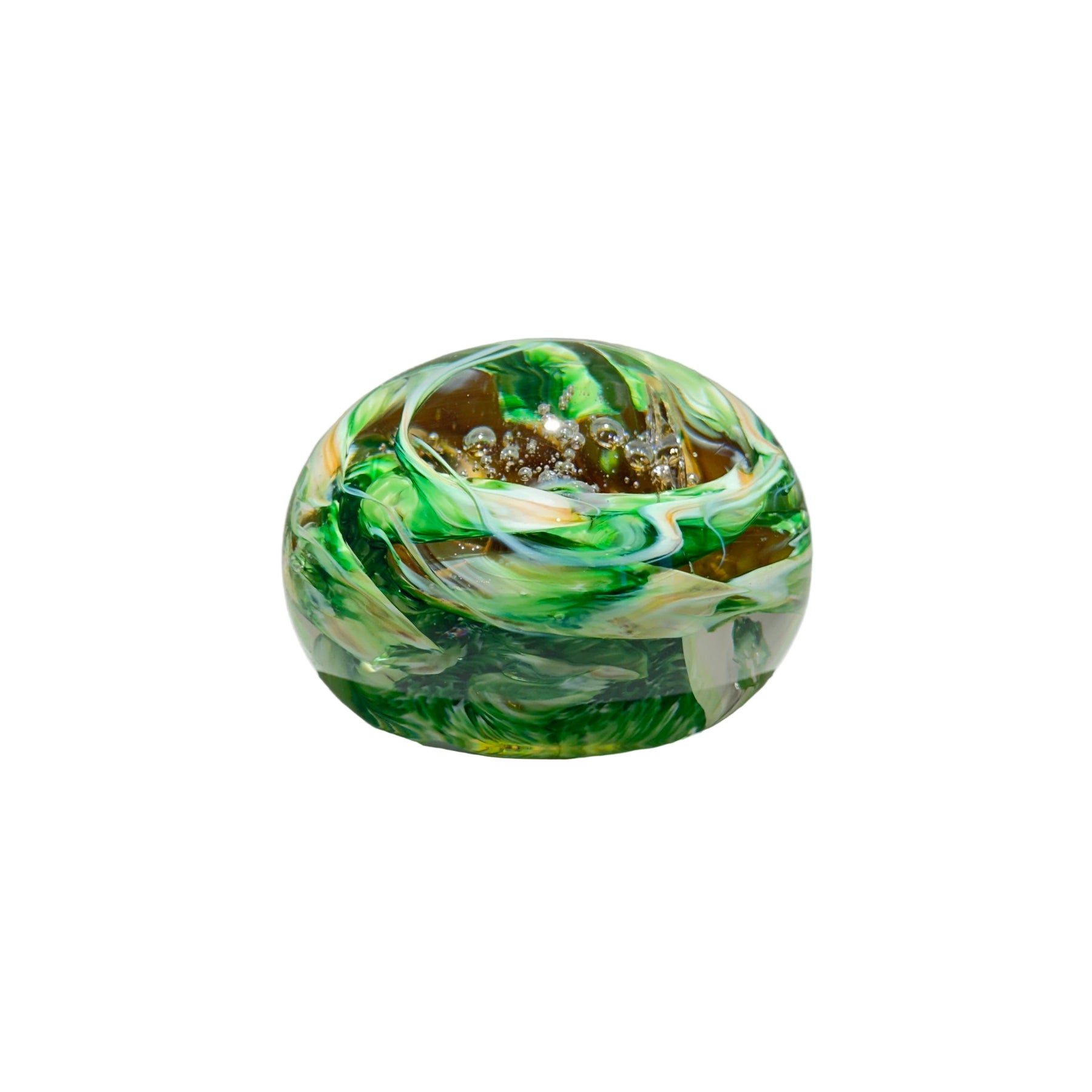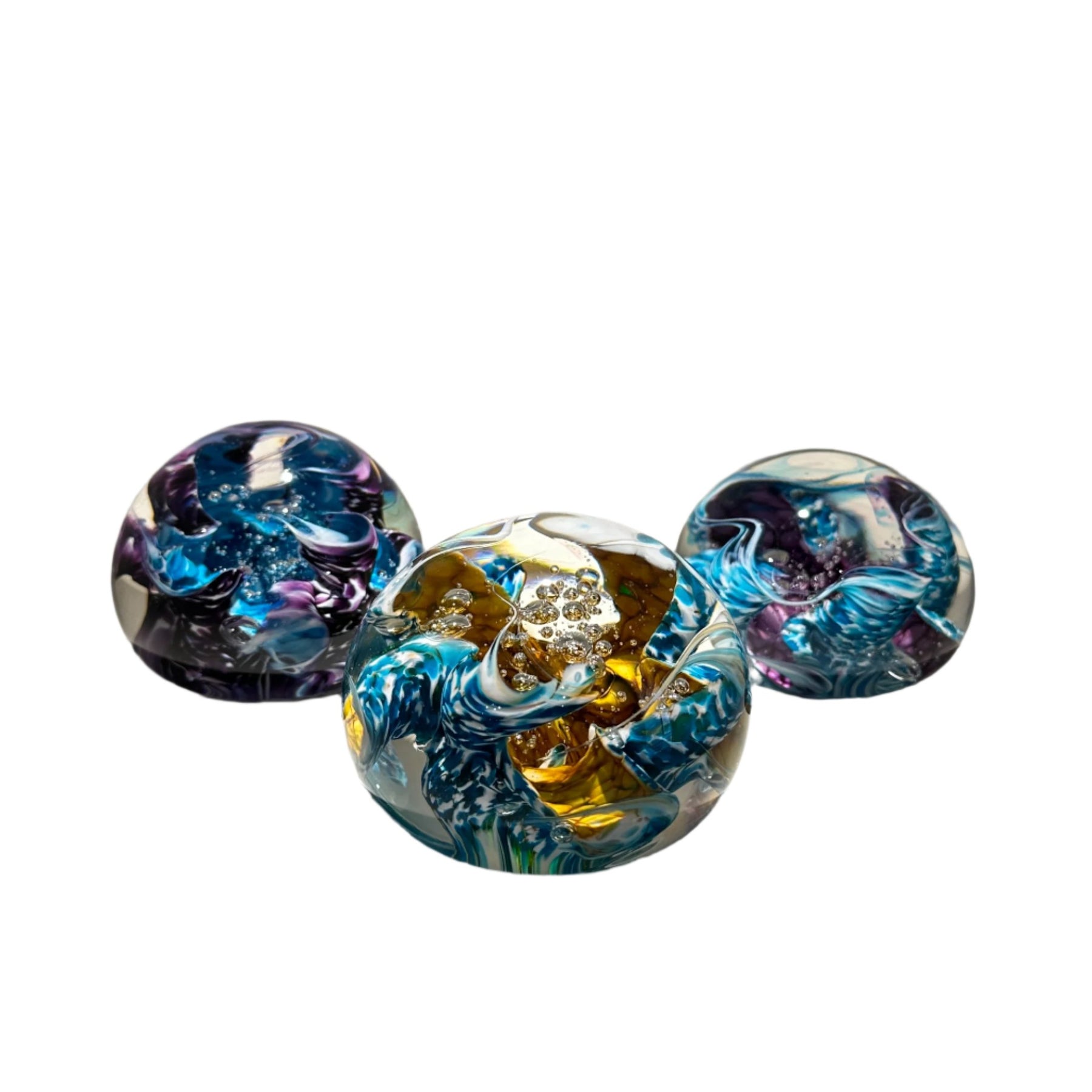 Our art glass is hand created and not manufactured. Small blemishes in the glass and variances in size and shape of the shades and art glass pieces are inherent to hand-blown glass. We want you to be pleased with your choices. Art glass pieces can be exchanged once within a 90 day period for a restocking fee plus shipping, or returned for store credit. All returned merchandise must be in salable condition. Contact our gallery for more details.