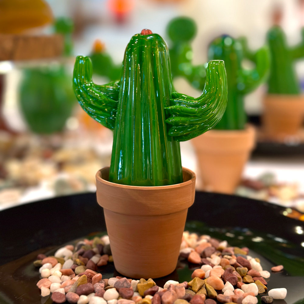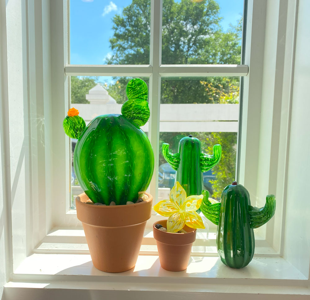 We can't grow these hand crafted glass cactus fast enough. They've been a favorite at Wimberley Glassworks. Each cactus is approximately 5" tall and ready to nestle into a terracotta pot with moss, or displayed separately to work with your own style and home decor. The mini terracotta pot measures 2.5" x 2.5".