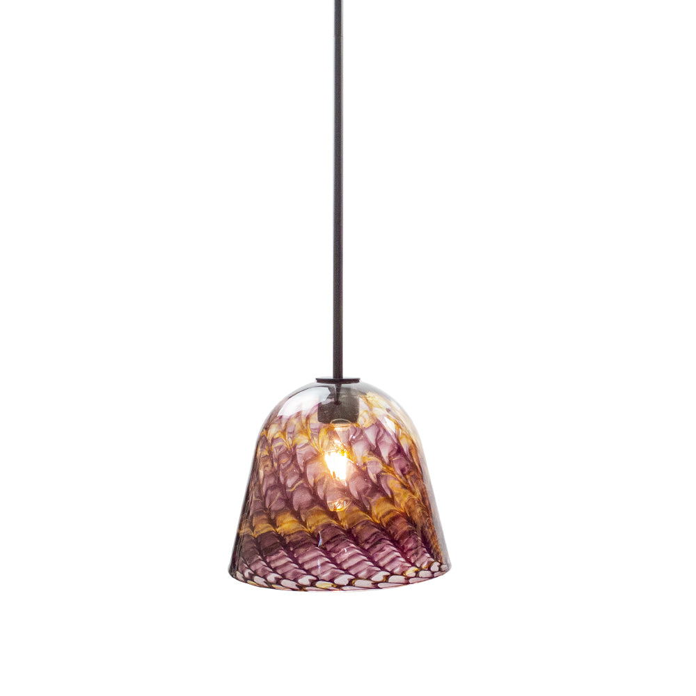 This lighting fixture is a Wimberley Glassworks' American made in-house design with signature hand-blown glass shades. It is available in an array of durable natural finishes or powder coat colors, and colored glass patterns crafted by our skilled team of artisans. Both components are proudly made in Texas.