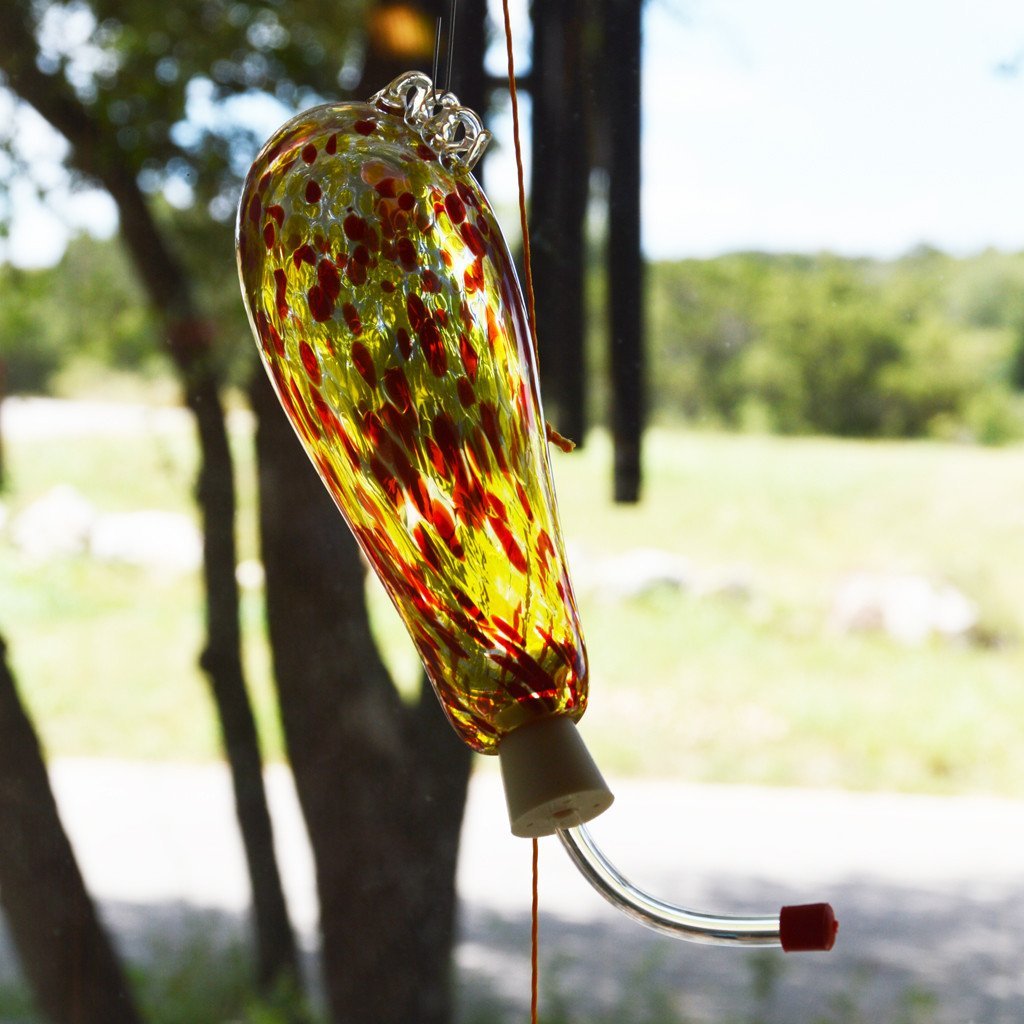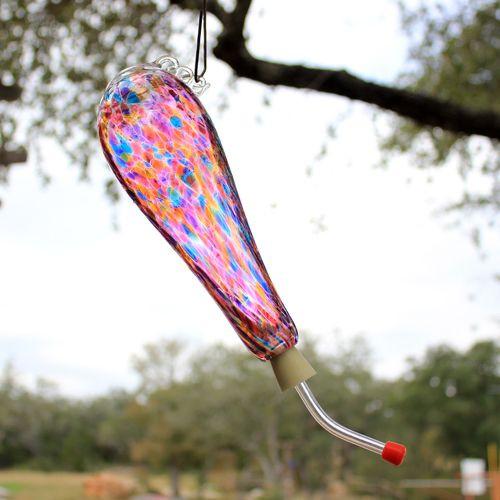 We've heard our hand blown glass Hummingbird Feeders are a favorite, for the birds especially. Each is individually hand crafted and vary in size and shape, and the colors in glass won't fade in the sunlight